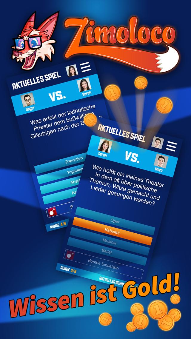 Zimoloco is an intelligent social online knowledge quiz in which you start against real quiz opponents.